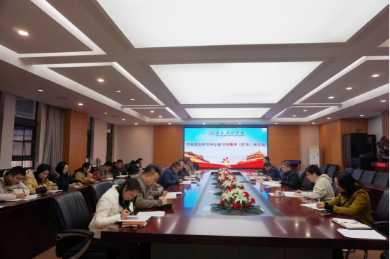 2025年12月4日,武汉晴川学院召开党委理论学习中心组12月集体(扩大)学习会,专题学习《党委(党组)意识形态工作责任制实施办法》、《中国共产党思想政治工作条例》;习近平总书记关于党的建设、党的自我革命的重要思想;中共湖北省委十二届十一次全体会议精神、全省高校工作会议精神;习近平总书记关于全面深化改革的一系列新思想、新观点、新论断以及习近平法治思想。党委书记翟细春、党委副书记向巍、纪委书记罗宏运等校领导,各学院党总支(副)书记,学校办公室、党委宣传部、党委组织部、人事处、教务处、科研处、学生工作部、校团委、校友办、继续教育学院、网络信息中心、马克思主义学院、后勤保卫处主要负责人参加。党委书记翟细春主持学习并作总结讲话。