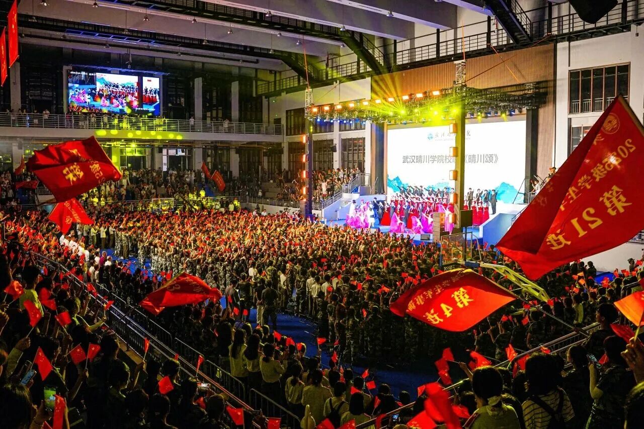 △ 2025级新生开学典礼,晴川学子以创意方阵深情表白祖国